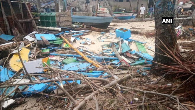 2: 20 pm: Television images showed parts of Kanyakumari district flooded and without electricity, with severe damage to power lines. In Kanyakumari and Thoothukudi districts, strong winds uprooted more than 500 trees, snapped power lines and damaged settlements close to the sea, reported AP.
