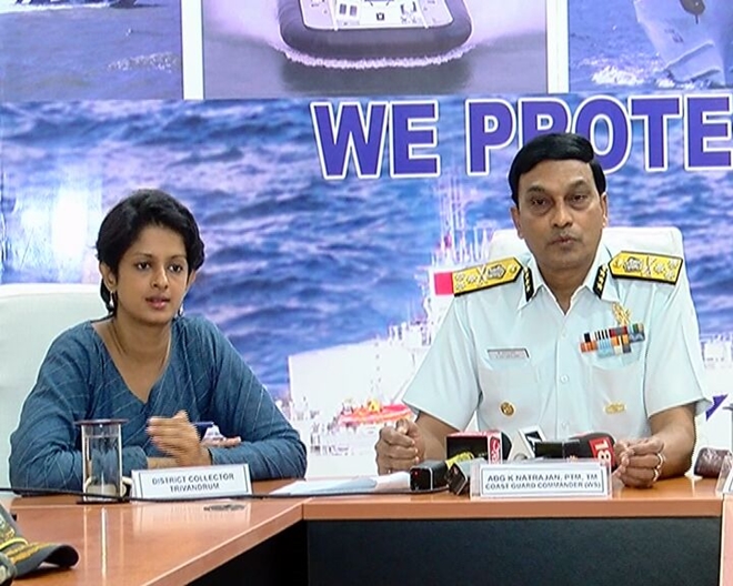 2: 52 pm: Coast Guard Commander (Western Seaboard) ADG K Natarajan held a joint Press Conference with District Collector Thiruvananthapuram and briefed about the herculean operational efforts of India Coast Guard in extreme rough sea conditions.