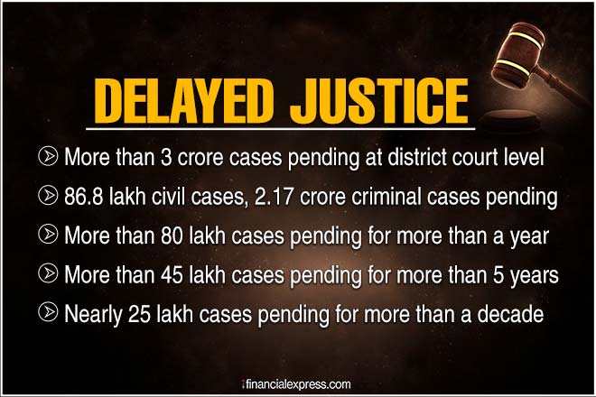 According to the latest official data, over 3 crore cases are pending, of which over 70% or 2.17 crore cases pending at district level are criminal cases and remaining 86.8 lakh or over 28% cases are pending before the civil courts.