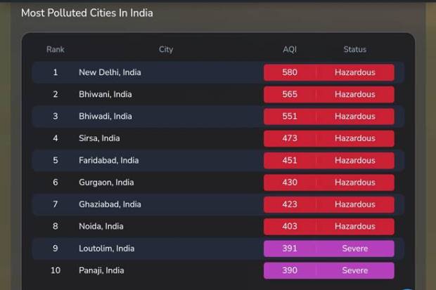 Stricter pollution control measures under Stage 4 of the Graded Response Action Plan (GRAP) will be imposed in Delhi-NCR starting from 8:00 am on Monday, following a significant surge in the pollution level. As per Prana Air, Air Quality Index (AQI) of the national capital has reached 580 and has been termed as hazardous. The Commission for Air Quality Management (CAQM) has declared the measures as the AQI climbed to 441 by 4 pm and further worsened to 457 by 7 pm because of adverse weather conditions. Major instructions include a ban on the entry of trucks and banning the public transportation projects temporarily.