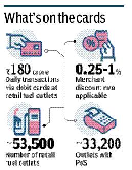 MDR is charged at 1% on credit card payments and 0.25-1% on payments via debit cards. It is levied when fuel is purchased and passed on to the bank concerned as a convenience fee. The issue of MDR cost on OMCs is only for debit cards as credit card users get around 45 days to repay and so the cost is passed to them.