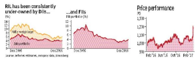 Under-ownership a key technical factor: More than the fundamentals, Reliance’s underownership in both FII and DII portfolios vs benchmark is likely a key factor in its recent price movement, in our view.