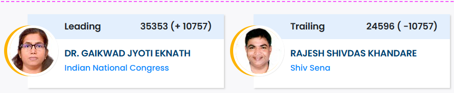 Dharavi Election results 2024 Live: Dr. Gaikwad Jyoti Eknath leads by 8,830 votes over Rajesh Shivdas Khandare