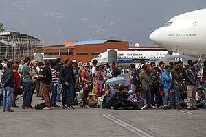 While 2,500 people have been evacuated so far, scores of people, largely Indians were lined up at the Tribhuvan International Airport to board commercial and special defence aircraft to return home.