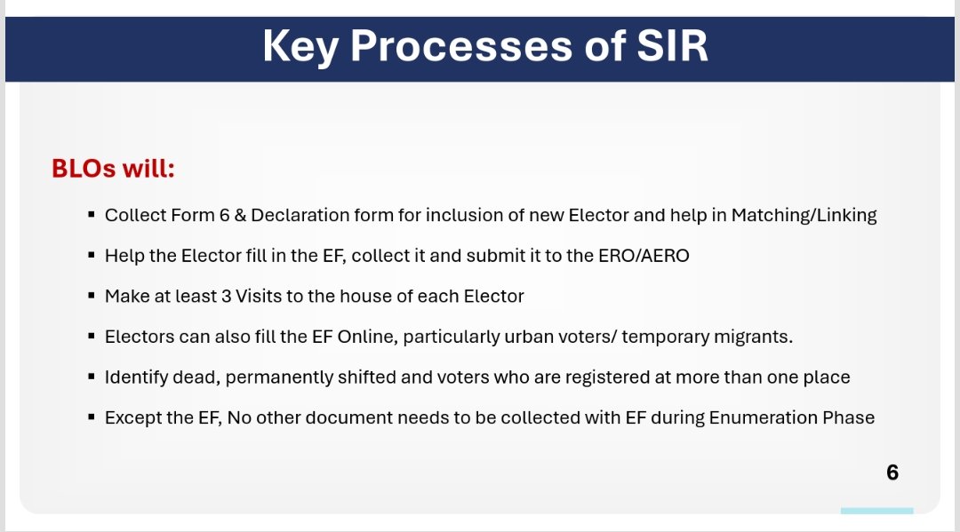 "During these meetings, the entire SIR process will be explained to them in detail. Regarding Booth Level Agents (BLAs), as was done in Bihar, each BLA can collect up to 50 signed Enumeration Forms per day from electors..." he added.