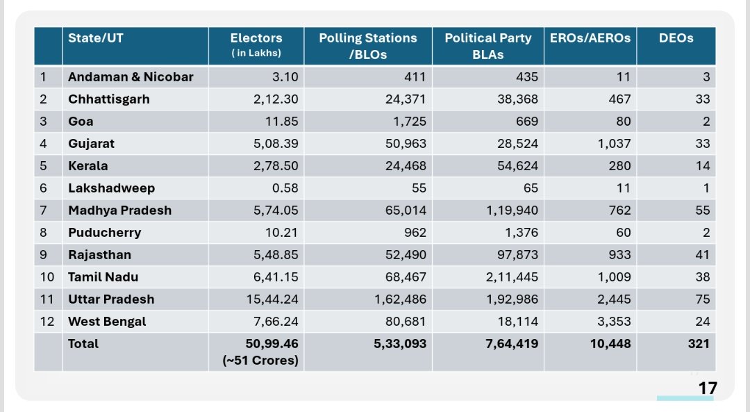 The ECI announced that in phase -2, the SIR exercise would be conducted in 12 staters, UTs.