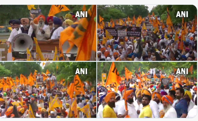 Farmers Protest Delhi Live: Shiromani Akali Dal takes out a protest march from Gurdwara Rakab Ganj Sahib to the Parliament building on the completion of one year of the Centre's three farm laws.
