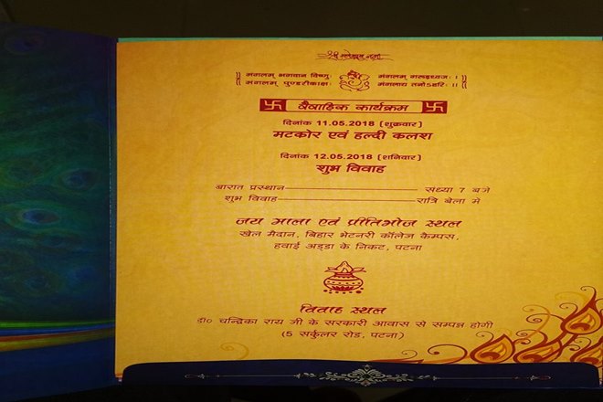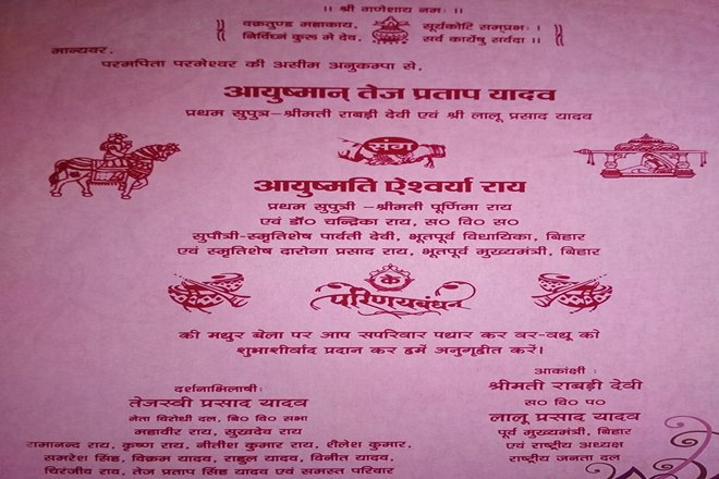 However, the wedding card of the RJD leader started to surface on the Internet on Wednesday. The wedding card entails location, timings etc. The exchange of garlands will take place at Patna’s Khel Maidan near Bihar Veterinary College campus. The marriage ceremony will take place at the official residence of RJD MLA and Aishwarya Rai’s mother Chandrika Prasad Rai – 5. Circular Road, Patna. The hosts of the marriage are Tej Pratap Yadav’s parents – Lalu Yadav and Rabri Devi.
