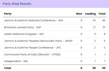 Here are the parties that are trailing and leading in Jammu and Kashmir so far: