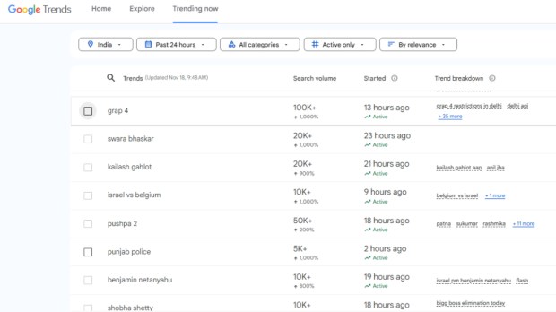 The most stringent anti-pollution protocol under the Graded Response Action Plan, known as GRAP-4, has sparked countrywide interest, dominating Google search trends since Sunday night. The Delhi government implemented these new measures after air quality levels reached ‘severe plus’ status, with the restrictions kicking in at 8 am on Monday.