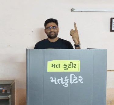 Aam Aadmi Party leader Gopal Italia casts his vote. Italia is contesting from the Katargam constituency.