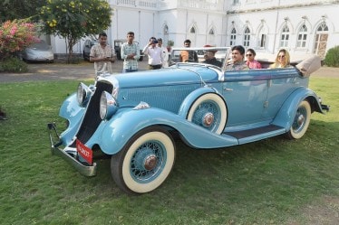 Rajkot royal family members Mandhatasinh Jadeja, Kadambaridevi Jadeja and Mridulakumari Jadeja arrive in a vintage car to cast votes at a polling station during the first phase of elections, in Rajkot. (Photo by PTI)