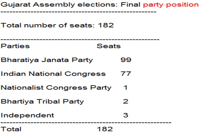 Final Tally Of #GujaratResults2017 #BJP : 99#Congress : 77