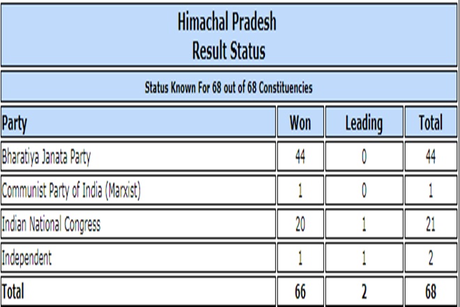 10:33 pm: Final tally for Himachal Pradesh assembly polls are out.