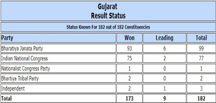 9:12 pm: BJP bags 99 seats in 182-member Gujarat Assembly; Congress gets 77 and others six.