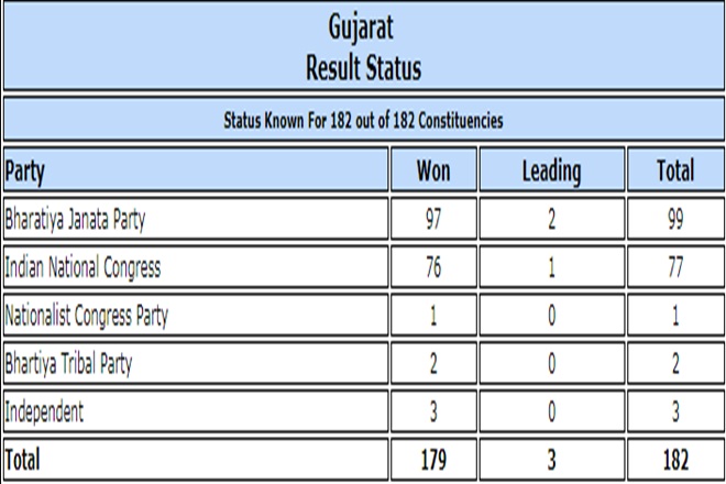 9:12 pm: BJP bags 99 seats in 182-member Gujarat Assembly; Congress gets 77 and others six.