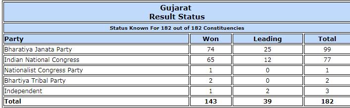 Final Tally Of #GujaratResults2017 #BJP : 99#Congress : 77