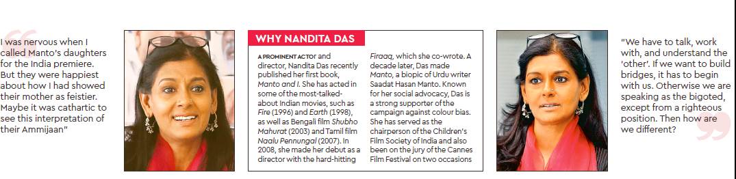 The book is really the back-story of making the film. It chronicles the journey, right from 2012, Manto’s centenary year, to why and how I thought of making the film, the challenges and excitement of researching and writing the script, and releasing the film. I share my meetings with Manto’s family in Lahore and how I feel I am a part of it. The book has chapters about how I gathered an eclectic cast and crew and raised the funds. How we recreated the Lahore and Bombay of the ’40s in today’s time, when there is so much modern-day clutter, with ACs, satellite dishes and hoardings. I also talk about my journey of embracing the label of being a ‘woman director’ and what to me is the female gaze. The book is called Manto and I because it is as much about me as it is about the film.