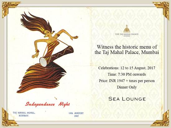 This Independence Day people visiting the Taj Mahal Palace in Mumbai will be served a throwback menu from 1947 and that too for just Rs 1947! As India gets ready to celebrate 70th year of Independence, the Taj Group has dug into its archives and prepared a dinner menu that is truly historic and which will be served every night till August 15 at key hotels around the country. The Taj Mahal Palace, established in 1903, is known for its glorious past and it has decided to prepare a a menu to suit this really special day. As per a report by Indian Express, on this occasion the Executive Chef of the Taj Mahal Palace, Amit Chowdhury will be serving up dishes based on an Indo-French menu consisting of a 3-course meal – in those days, French cuisine was on top of the food charts of the movers and shakers in the country. The Independence dinner was served on August 14, 1947 and the same has now been revived by the hotel.