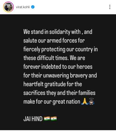 “We stand in solidarity with and salute our armed forces for fiercely protecting our country in these difficult times…”, cricketer Virat Kohli