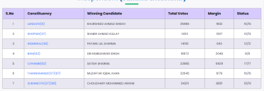 Arvind Gupta of the BJP has won the Jammu West seat with a commanding margin of 22,127 votes. Meanwhile, Tanvir Sadiq of the NC-Congress alliance claimed victory in the Zadibal seat with a margin of 16,173 votes. Both results mark significant wins for their respective parties in the ongoing elections.