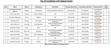 Jammu and Kashmir Apni Party candidate Syed Mohammad Altaf Bukhari contesting from the Channapora constituency is the richest candidate with declared assets worth over Rs 165 crore. He is followed by Tariq Hameed Karra, Congress candidate from Central Shalteng constituency with assets worth Rs 148 crore, according to a report.