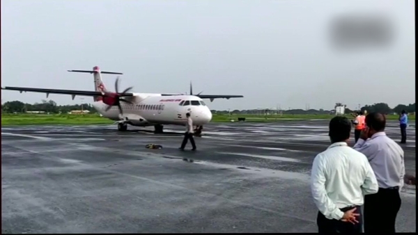 First commercial flight lands at INS Garuda Kochi Naval Air Station after Cochin International Airport got affected due to floods.