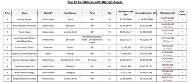 Independent candidate Nilesh Bhagwan Sambare contesting from Bhiwandi seat in Maharashtra has assets worth Rs 116 crore, while BJP candidate Piyush Goyal contesting from Mumbai North constituency has assets worth Rs 110 crore.