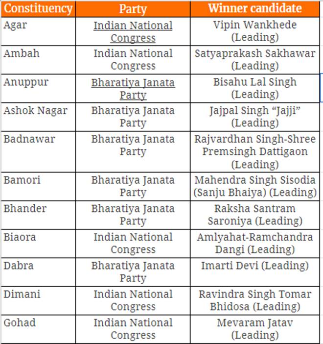 Madhya Pradesh By election 2020: Full List of Winners (Constituency and party-wise)