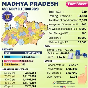 In the 230 assembly seats spread across 52 districts, a total of 73,622 Ballot Units (BUs), 64,626 Central Units (CUs) and 64,626 VVPAT (Voter Verifiable Paper Audit Trail) units are being used for conducting polling.