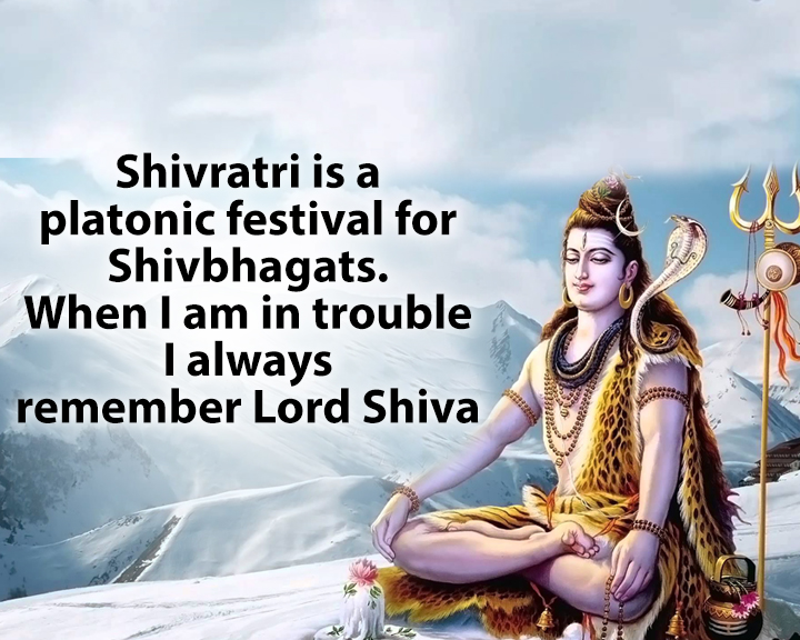 Shivratri is a platonic festival for Shivbhagats. When I am in trouble I always remember Lord Shiva.