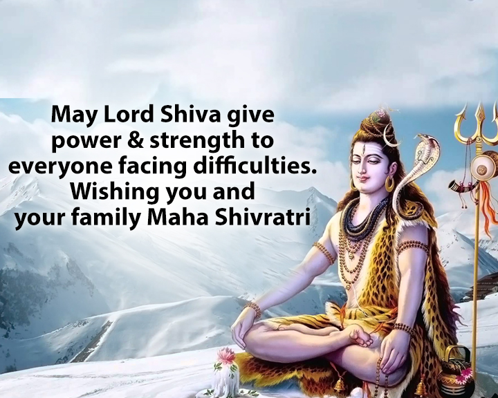 May Lord Shiva give power and strength to everyone facing difficulties. Wishing you and your family Maha Shivratri