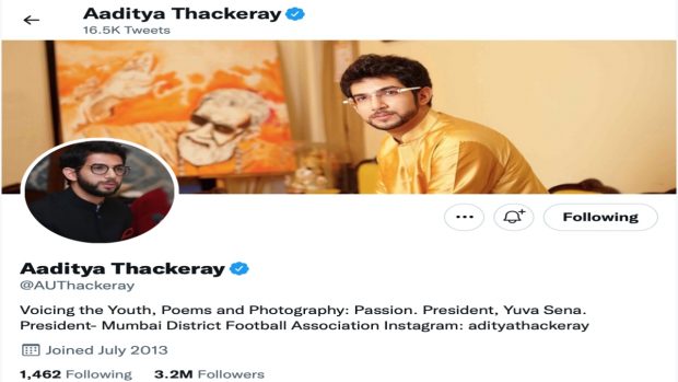 Shiv Sena leader and Maharashtra Chief Minister Uddhav Thackeray’s son Aaditya Thackeray has dropped “minister” from his Twitter handle bio.