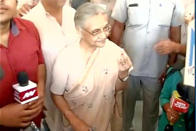 12:12 PM: Former Delhi Chief Minister Sheila Dikshit after casting her vote in a polling booth in DAV School (Nizamuddin East):