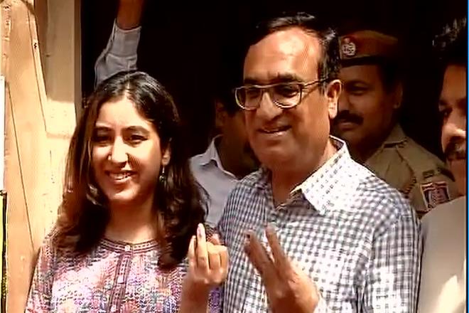 10:30 AM: Congress leader Ajay Maken after casting his vote in Rajouri Garden: