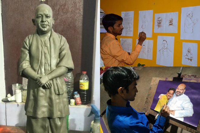 The Bharatiya Janata Party (BJP) is planning to install miniatures of Prime Minister Narendra Modi and UP Chief Minister Yogi Adityanath at all party offices in 75 districts of the state. These miniatures are made up of fibre and designed by Chitrakoot-based professional artist Vinay Sahu. Speaking to FinancialExpress.com, Sahu (30) said the statues of both the leaders were presented to Adityanath by Sunil Bansal (organisational) general secretary, BJP on June 5 – the day the CM turned 46.