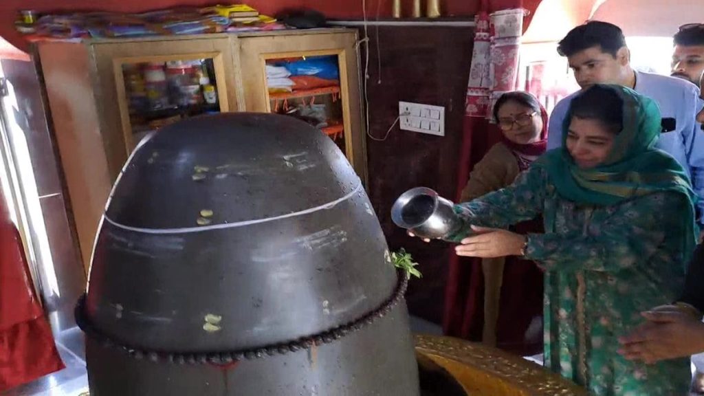 The People’s Democratic Party (PDP) chief, who was on a two-day visit to the district, performed Jal Abhishek on the idol of Lord Shiva, and also offered flowers to the statue of Bani Yashpal Sharma in the temple premises.
