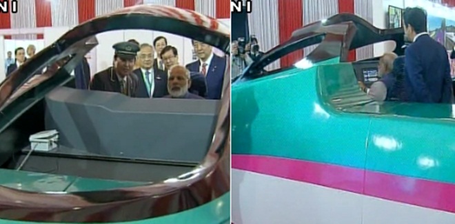 4: 08 PM: Visuals of PM Narendra Modi and Japan’s PM Shinzo Abe at the Bullet Train Simulator.