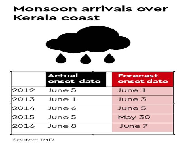 India Meteorological Department (IMD) on Tuesday stated that the southwest monsoon (June-September) is likely to hit Kerala coast on May 30 with a model error of ± 4 days. Monsoon usually arrives over Kerala in the first week of June, then covers rest of the country during next one month or so. “The statistical model forecast suggests that the monsoon onset over Kerala in this year is likely to be close to the normal date,” IMD said in a statement.