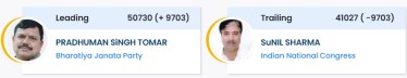 BJP candidate Pradhuman Singh Tomar heads towards victory by securing over 50,000 votes, after 7 rounds of counting. Congress candidate at distant second with over 41,000 votes.