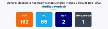 The Bharatiya Janata Party (BJP) is leading in 162 seats and Congress is leading in 65 seats in the 2023 Madhya Pradesh Assembly Election results, as per ECI trends.