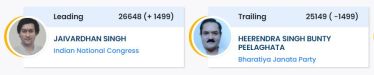 As per official trends, Congress’ Jaivardhan Singh is leading against BJP’s Heerendra Singh Bunty in the Raghogarh constituency of Madhya Pradesh