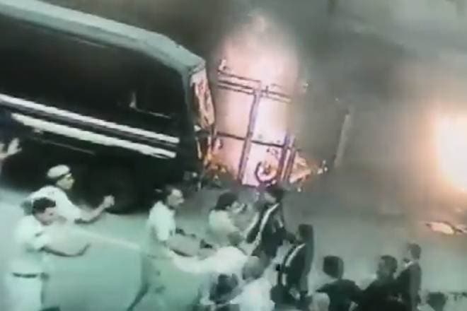 In a CCTV footage of the incident shared by news agency ANI, a woman IPS officer can be seen pleading to protesters with folded hands, along with few other police officers. A fire can be clearly seen in the background. Seconds later, a group of men, allegedly lawyers, charge towards her and the other cops, surround and push the cops out of the range of the CCTV camera.