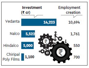 Of the total Rs 25,845-crore investment proposals, Vedanta alone has proposed to invest Rs 14,223 crore and create employment for 10,694 people in three separate units. The aluminium major has proposed to expand the capacity of its refinery unit at Lanjigarh in Kalahandi district at an investment of Rs 6,483 crore, which would provide employment to 9,494 people.