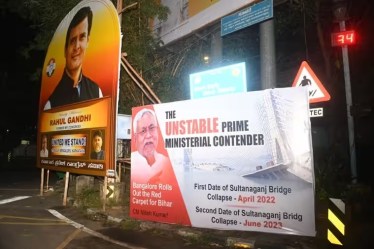 One of the posters read, “Welcome to Shri Nitish Kumar, Chief Minister, Government of Bihar. Sultanganj Bridge, Nitish Kumar's gift to Bihar that keeps collapsing. While bridges in Bihar cannot withstand his reign, count on him to lead the 'Opposition Party' campaign.”