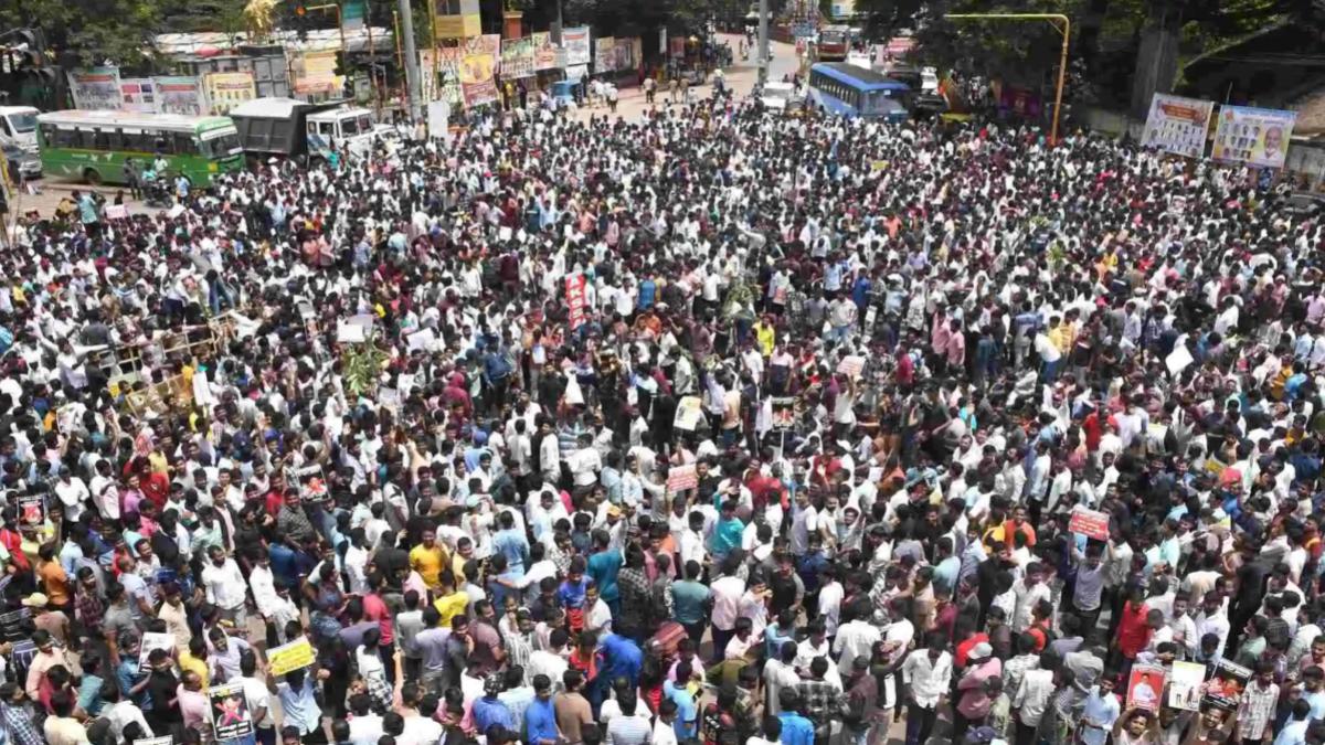 Unemployment has emerged as a fresh flashpoint in Karnataka’s Dharwad. Thousands of students and job aspirants took to the streets in Dharwad on Tuesday to demand immediate recruitment to vacant government posts. The protest is being led by the All Karnataka State Student Association (AKSSA).