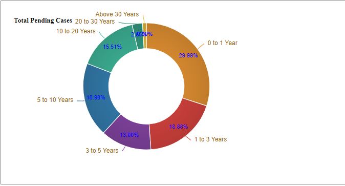 Among the High Courts, Rajasthan has the highest pendency with 7,41,358 lakh cases as on Thursday, followed by Allahabad HC with 7,25,143 and Bombay with 4,64,074.