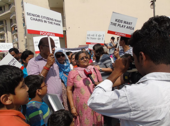 A group of over 100 residents of PAN OASIS, Sector-70, Noida staged a protest on Saturday and took to the streets with women and children to protest against various issues against the builders, PAN Realtors Pvt Ltd. The peaceful march saw support from home buyers residing in Sector 70. One of the major issues highlighted by the buyers has been the outstanding amount of Rs 131 crores that the home buyers stated has to be paid by the builders to the NOIDA Authority. The information relating to the huge outstanding amount surfaced in response to an RTI application by one of the residents. The entire project has about 2200 flats, out of which about 1800 flats have already been sold. However, the protesting home buyers have alleged that the builder has deposited only about 123 crores with the Noida Authority.