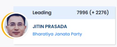 BJP’s Jitin Prasada leads with over 4.5 lakh votes. Whereas, Samajwadi Party candidate Bhagwat Saran Gangwar is on second position