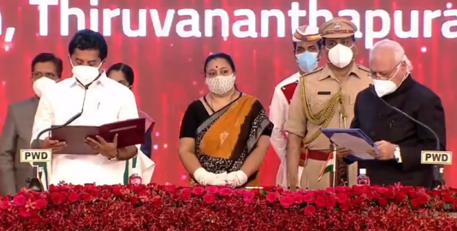 The CPI-M led Left Democratic Front has won 99 seats in the 140-member assembly. An order issued by the Chief Secretary regarding the oath-taking ceremony stated that entry to the venue will be strictly through an entry pass and the entry/exit will be regulated by maintaining social distancing. The order said that the seating arrangements including at the dais will be made as per COVID-19 protocol. Entry will be allowed to only those persons having RT-PCR/TRUNAT/RT-LAMP negative results obtained within 48 hours or on the production of a final certificate of COVID vaccination. The order also stated that a testing facility for COVID-19 shall also be arranged near the venue.